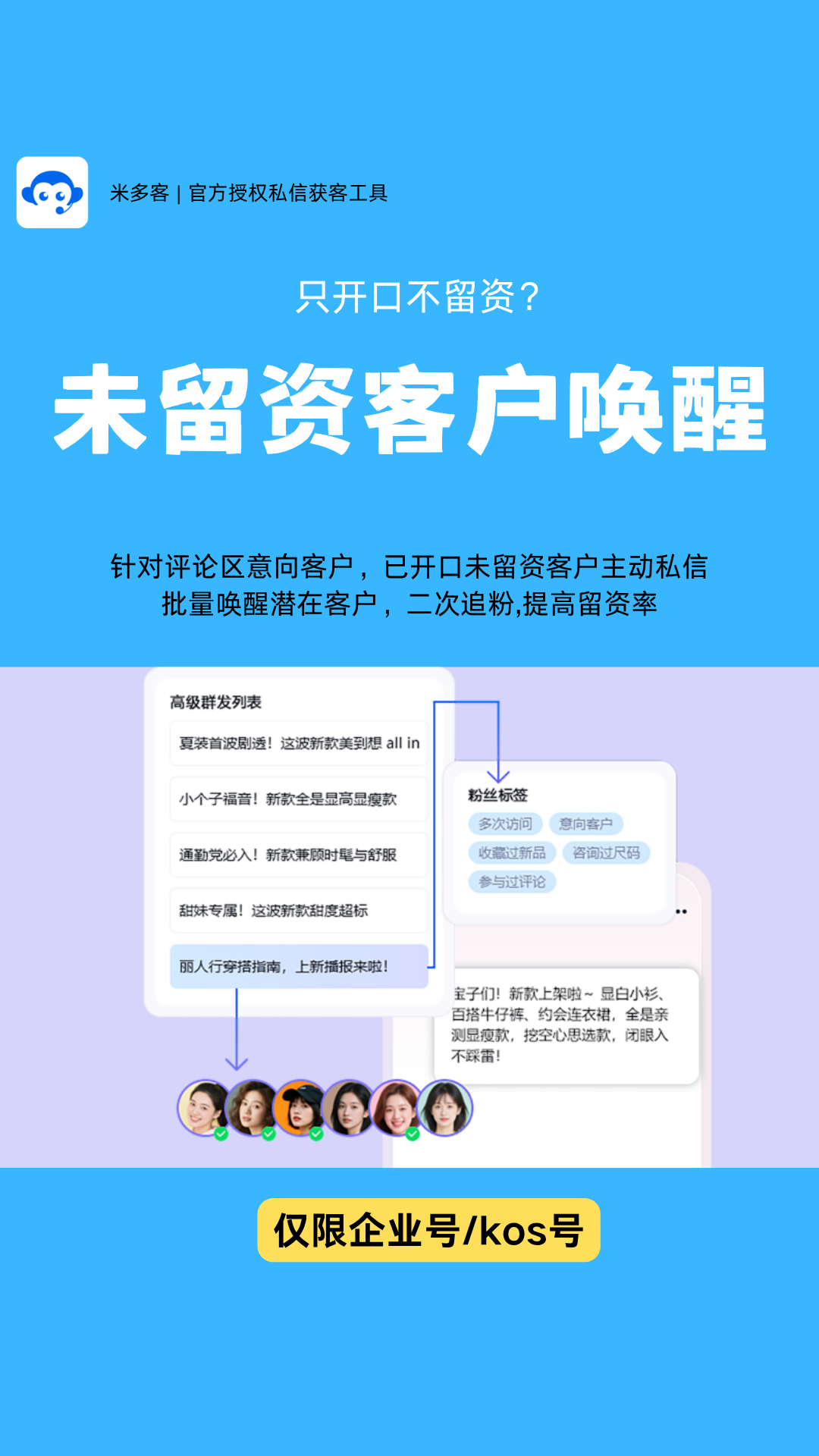 转化闭环:米多客不仅承接流量,还能通过定时私信追踪未留资客户,配合完整的数据统计看板,形成“获客-接待-留资-追粉-分析”的闭环;其他工具大多停留在消息聚合或基础自动回复层面,缺少后续的主动激活能力。