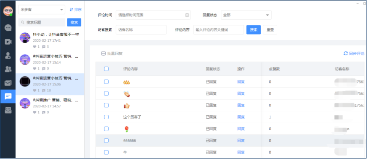 根据抖音推荐算法,我们知道要尽量对每一个评论进行回复,与粉丝产生互动,增加粉丝粘性,与粉丝互动代表该视频的一个活跃度。抖小助可以实现评论快速回复和批量回复等功能,告别过去一条条点击回复,消耗大量人力和物力。