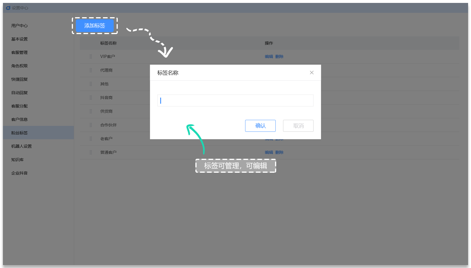 比如某位姓刘的女士向客服咨询六年级英语课程,那这时客服就可以给这位家长打上“六年级、英语”等标签。