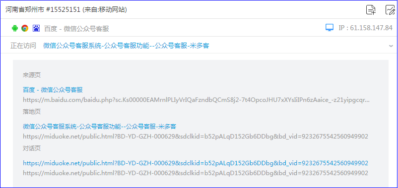 3. 能够自动调取不同渠道的历史聊天记录和访客信息,更好的分析分析客户的访问浏览动机,使企业更加有效的提升服务质量,促成成交量,提升满意度。