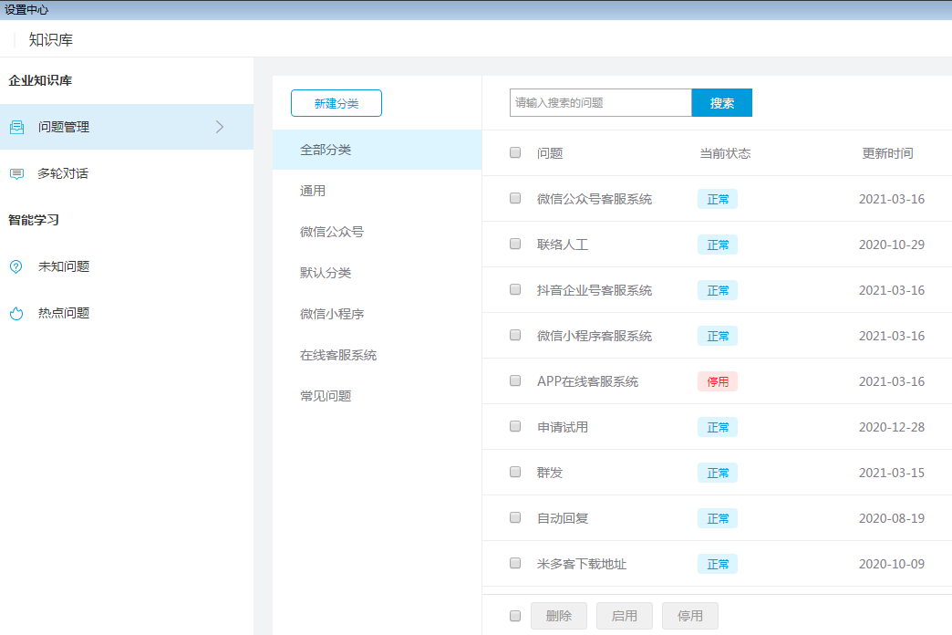 根据用户的常见问题,可以提前设置问题答案,快速解决常规问题,提高接收效率。智能机器人可以自动记录答案,并拥有独立丰富知识库。可以修改不准确的知识库,在没有客服人员的情况下实现自助服务接收。