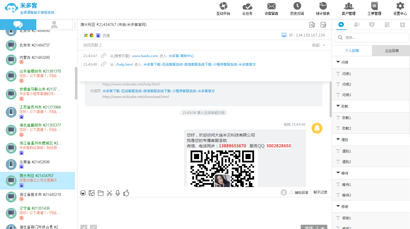 本文简单介绍了一下米多客在线客服软件的一些功能,其它还有客服自动分流、打标签分组、数据统计、CRM系统、工单系统等等,非常全面且强大,米多客都是可以试用体验这些功能的。