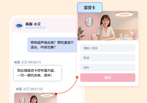 预设常见问题话术库,AI识别关键词自动回复,提升响应速度,夜间咨询也能及时跟进。自动发送留资卡,提升获线率。