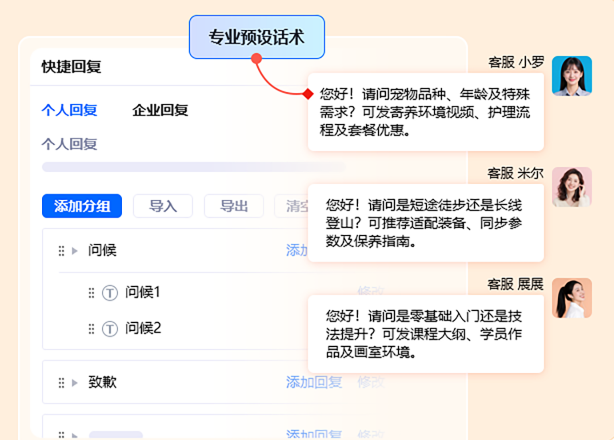 系统内置专业AI助手,可进行初步客户意图识别、常见问题自动解答,并实时为客服推荐最优话术。在接待高峰,AI能有效分流,确保每一位潜在客户都获得即时互动,不错过任何销售机会。