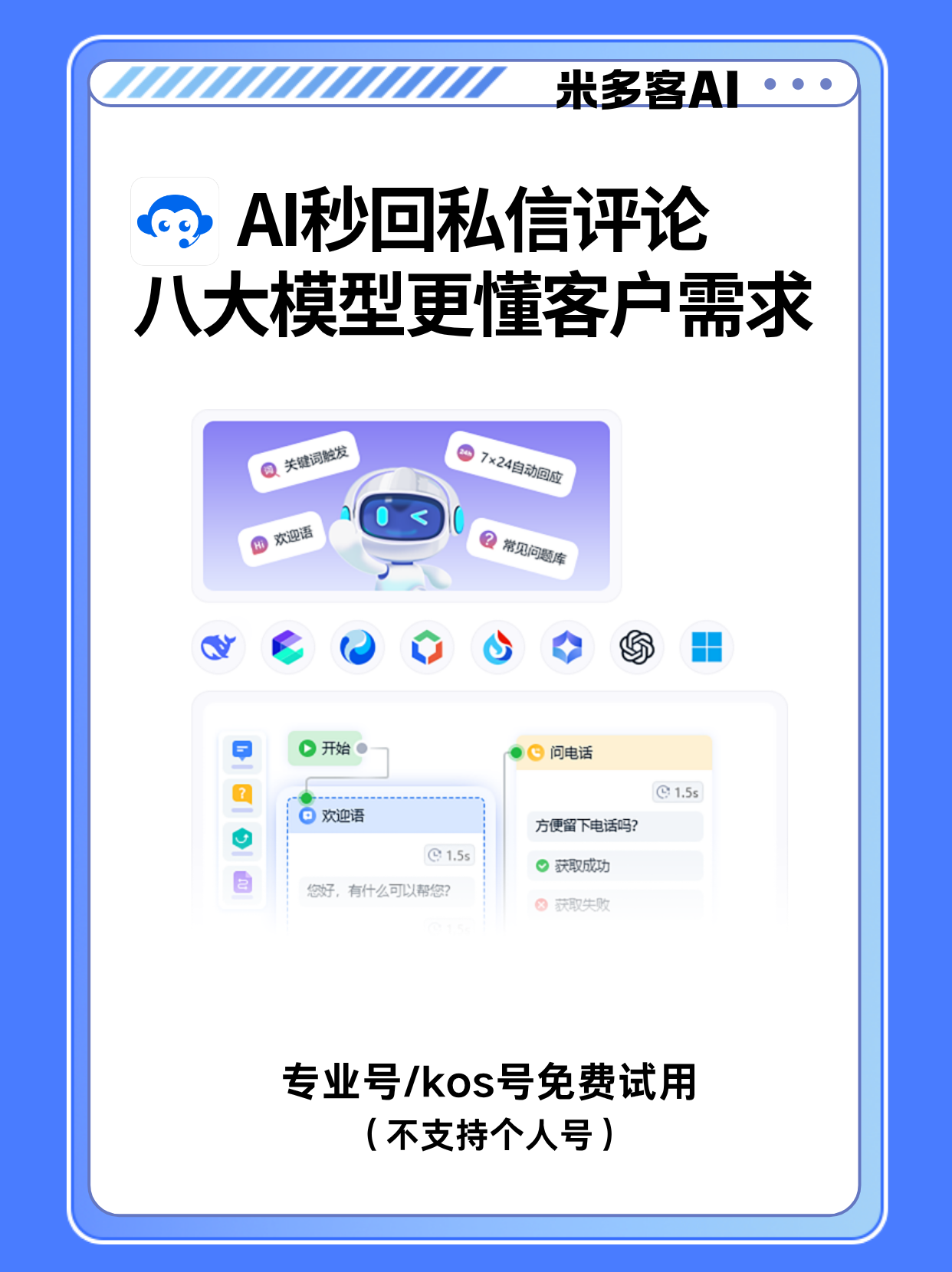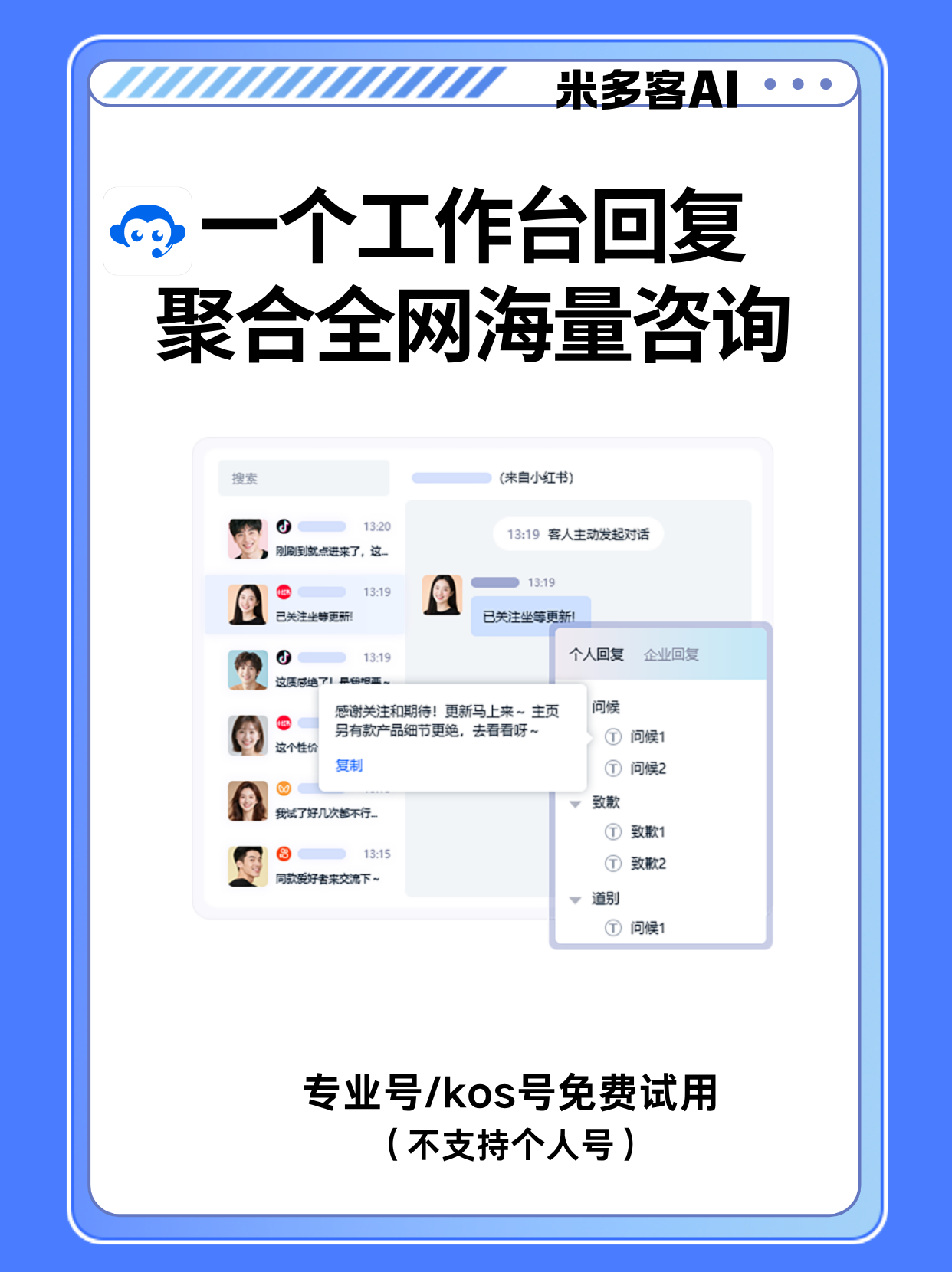 2026 年抖音、小红书已成为企业线上获客核心阵地,多账号运营、高并发咨询、全天候转化需求,让智能获客客服系统成为刚需。本文对市面主流客服工具进行横向测评,清晰对比各产品定位与短板,重点解析米多客营销版在多平台聚合、AI 智能获客、私信留资转化、客户激活等核心优势,为企业提供真实、可直接落地的选型参考。