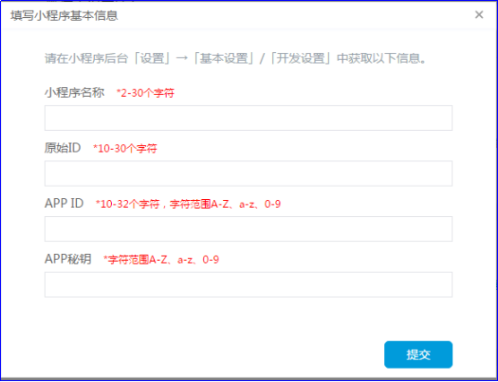 1. 获取小程序的「小程序名称」、「原始ID」、「AppID」和「AppSecret」。这些信息可以在小程序后台「设置」-「基本设置」和「开发设置」中查看。