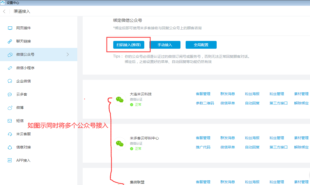 解决方案:米多客公众号客服软件支持多个微信公众号接入,一个后台轻松完成所有微信公众号与客户的高效沟通,提升运营效率。