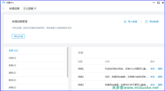 米多客知识库支持客服快捷回复,针对企业常见问题编辑保存,一键发送,大幅提高客服工作效率。同时支持文本、图文、图片、卡片等多种内容形式,让沟通更多样化。