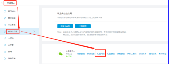 1. 进入米多客,选择渠道接入-微信公众号-粉丝海报,新建粉丝海报;