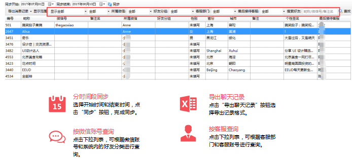 聊天记录同步到服务器端,聊过的客户消息记录随时调出,不用再去拿手机查看历史聊天内容节省时间,微信销售行为得到有效监管,杜绝骗红包和辱骂粉丝的现象,维护品牌口碑。