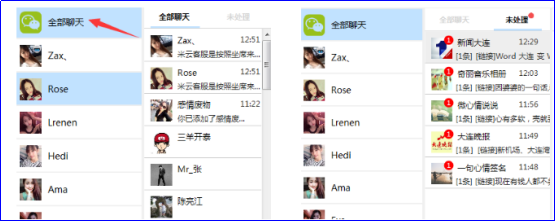 支持将多个微信账号整合在一个页面,整合了所有登录微信的全部聊天,可以有效解决号多、聊天窗口多的问题,客服人员只需关注全部聊天中的对话,消息未处理功能提醒所有未经查看的消息,避免消息过多遗漏商机。可以有效提高客服人员的服务效率。