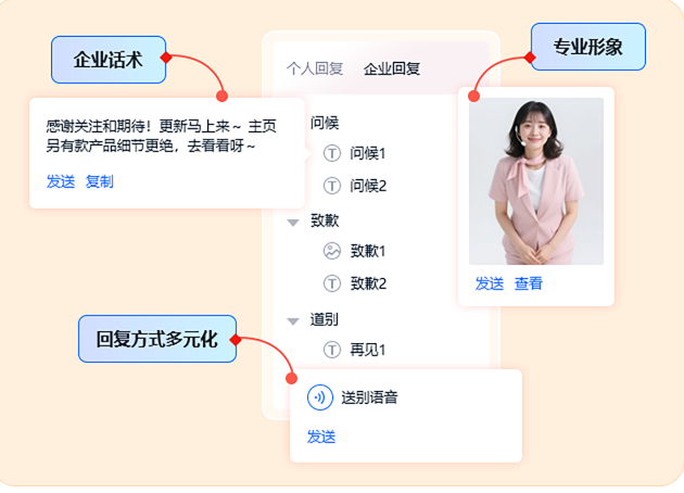 针对不同用户意图,预先设计好话术,提升沟通质感:
