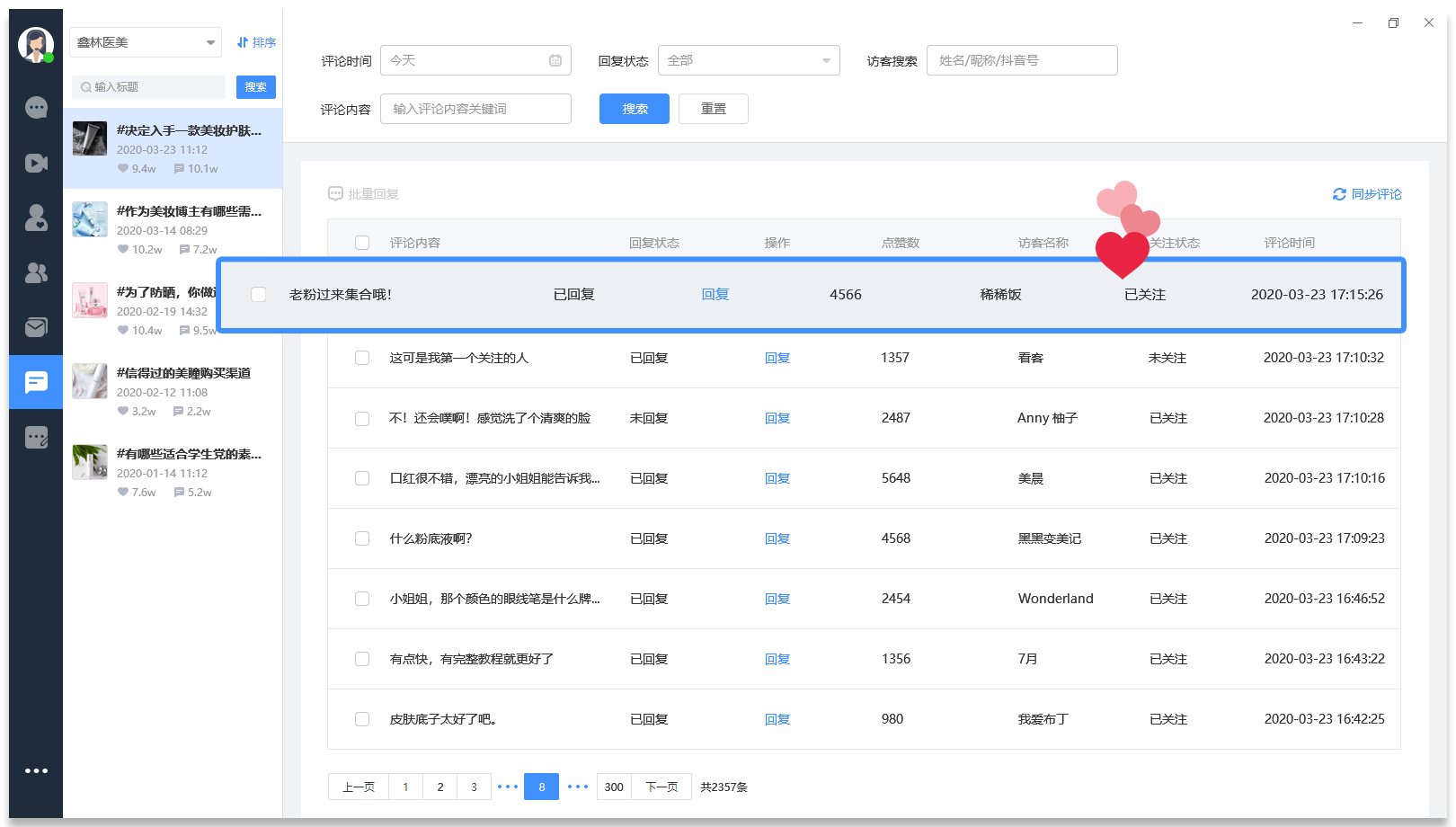 如果一条抖音视频火了,可能要面对几千甚至几万条评论,一条条回复是根本回复不过来的,通过抖小助抖音客服系统可以针对抖音视频的评论进行批量回复,实现和粉丝的及时评论互动,减少粉丝取关率的同时,还能提升抖音号的权重,以获取更多视频推荐量。