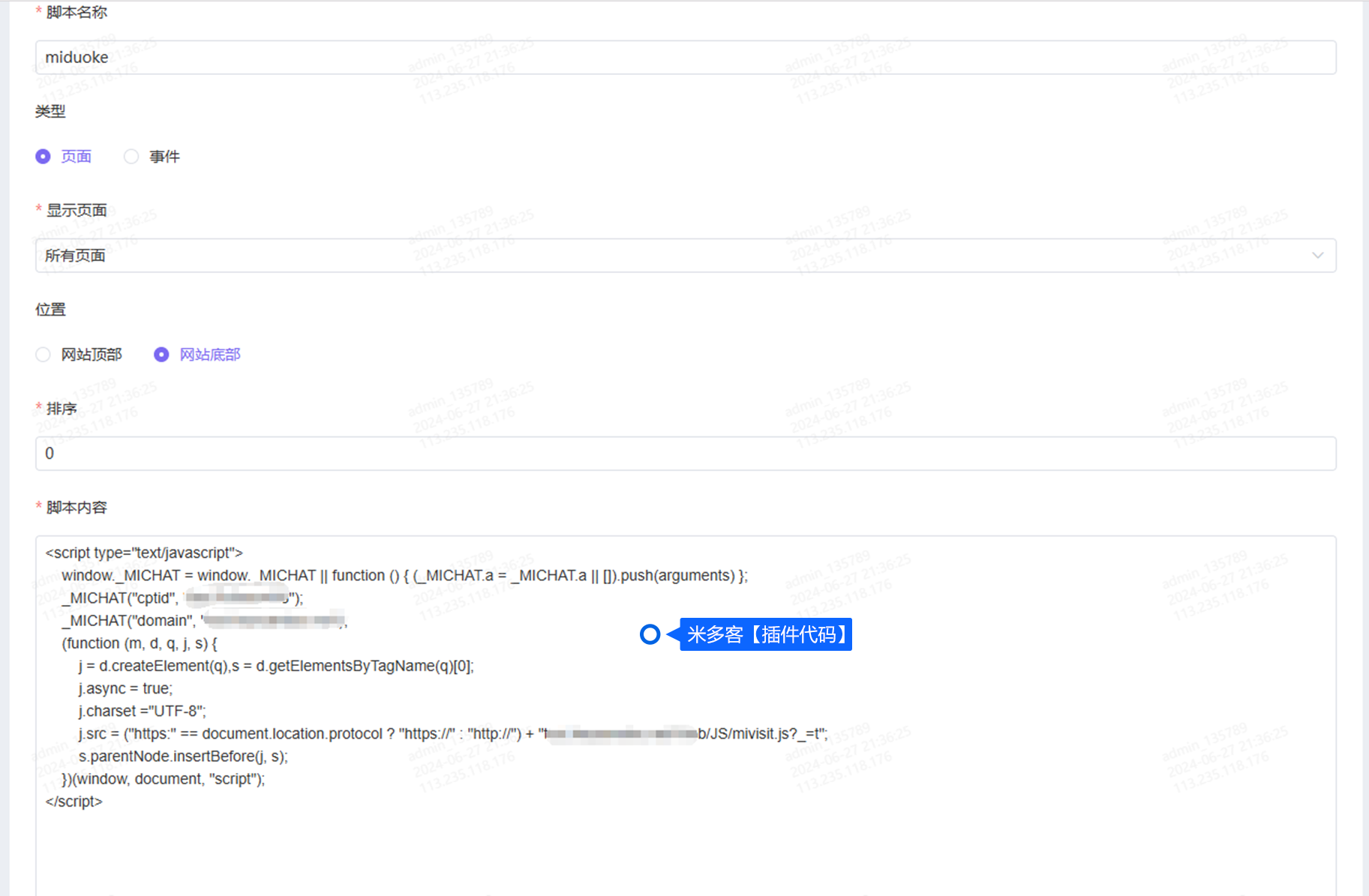 第一步:获取米多客插件代码