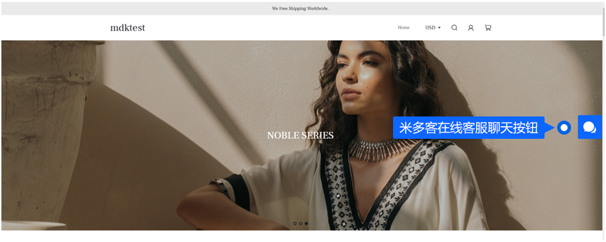 绑定成功后,访问商店时显示米多客聊天按钮即表示安装成功。
