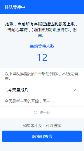 - 引导留言:引导排队的客人留言,缓解因客人不想等待而退出对话造成的流失。