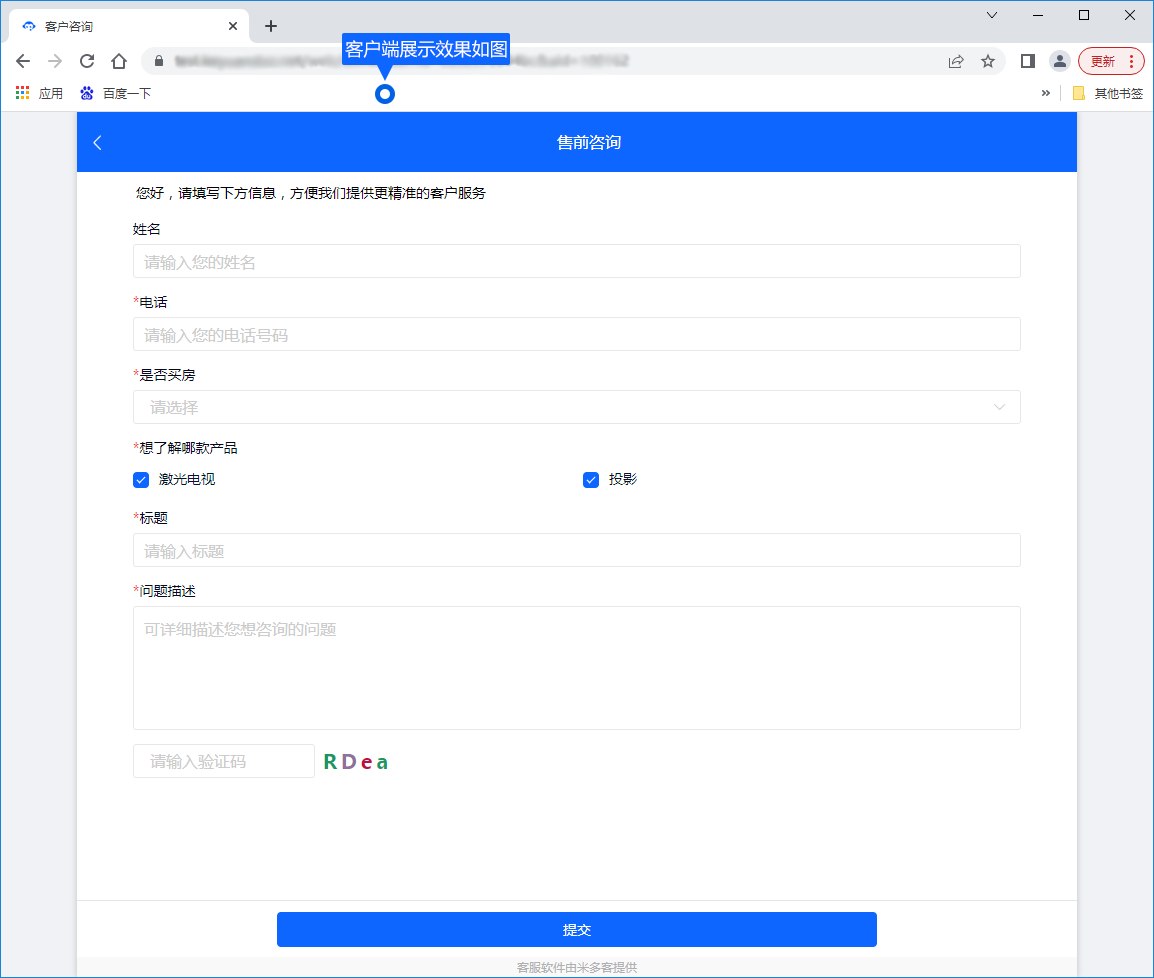 米多客提供可灵活配置的链接,企业可以将链接署到官网、APP、小程序、企微、钉钉等渠道。客户点击链接并提交即可生成工单,同时企业通过工单链接,自定义表单字段即可获取所需信息。