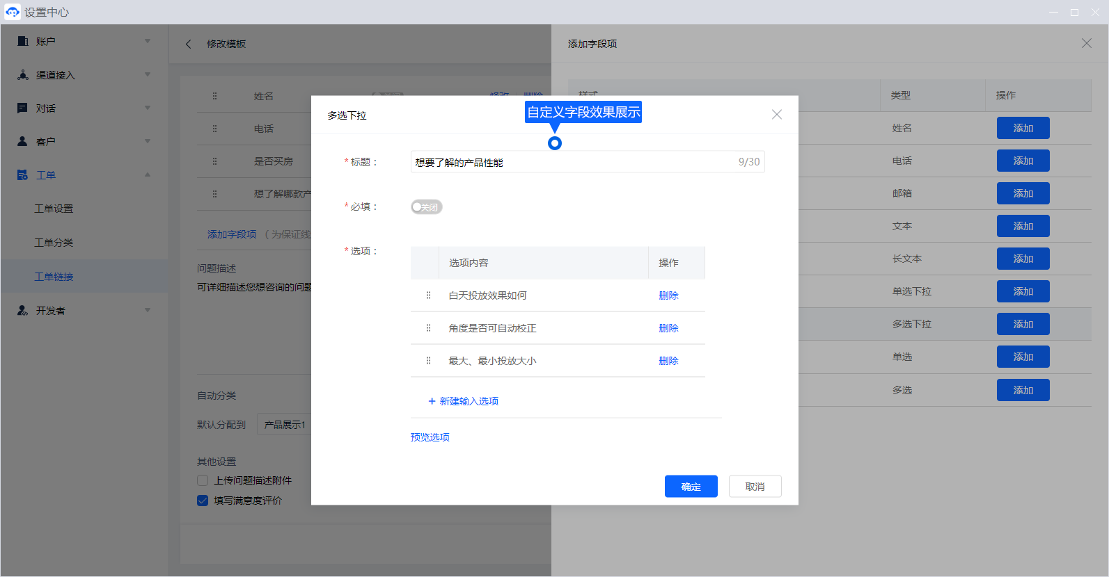 工单模板添加字段项效果图,如下: