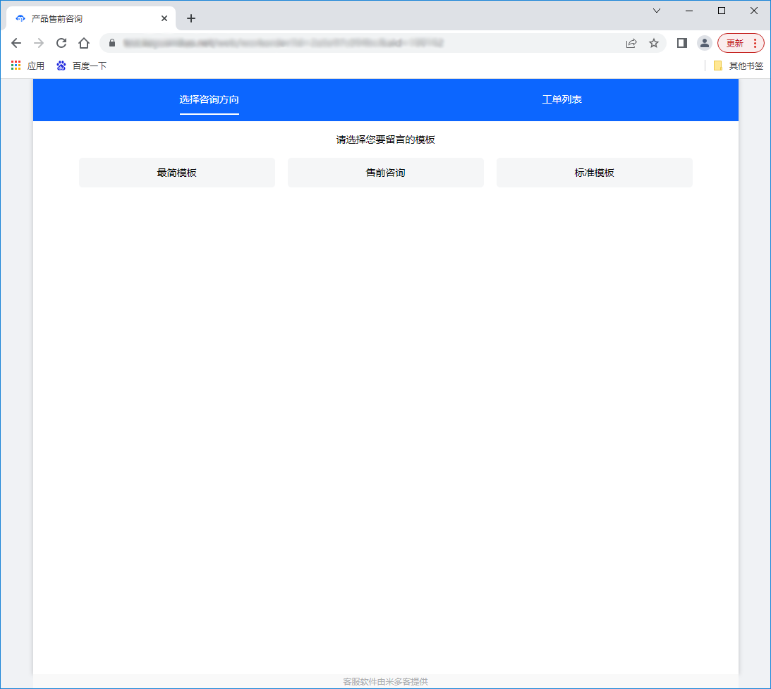 - 引导文案:设置工单链接上方的提示语文案,引导客户选择模板;