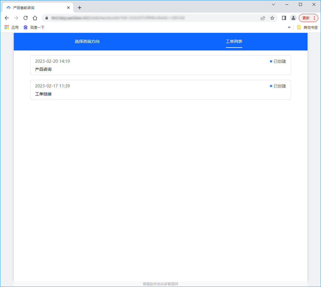 工单链接客户端展示效果: