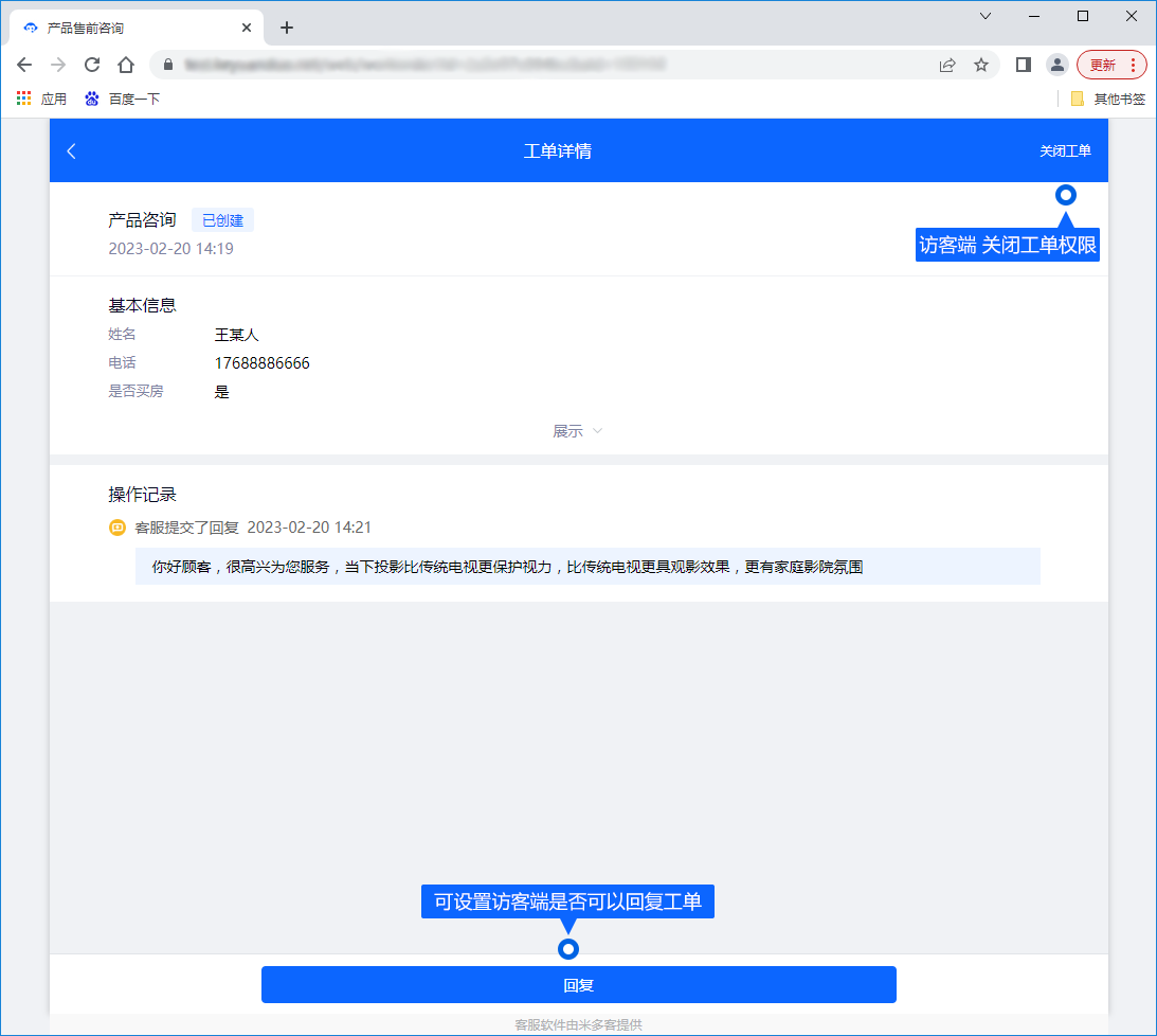 - 客户回复功能:设置客户是否可对工单进行回复