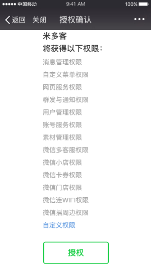 *米多客不会参与到其他权限中,为了绑定成功,建议此处直接点击“授权”即可
