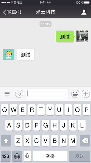*测试对话功能是否可用。建议关闭微信自带的多客服,避免消息无法发送至米多客的情况。